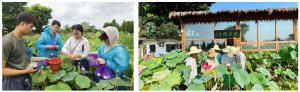 授牌仪式结束后,陈龙清理事长一行参观考察了同心公园的水生植物研究所和雅美佳公司的荷莲生产培育基地,并对后续研究生们在基地进行的荷花种质资源观测、调查及杂交等工作做了进一步部署。